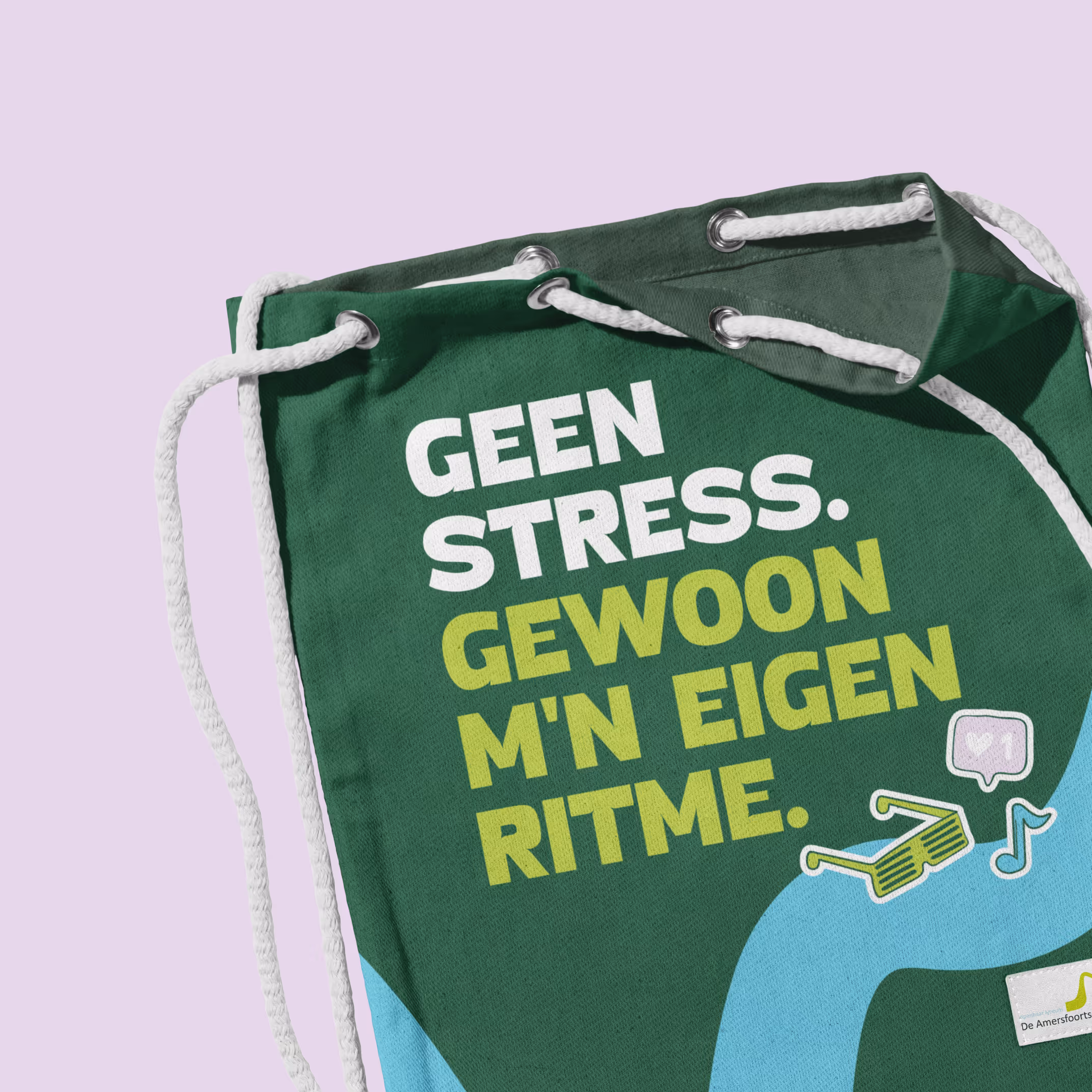 De stijl werd doorgevoerd in alle middelen: van routing en vlaggen tot briefpapier, website en socials.
