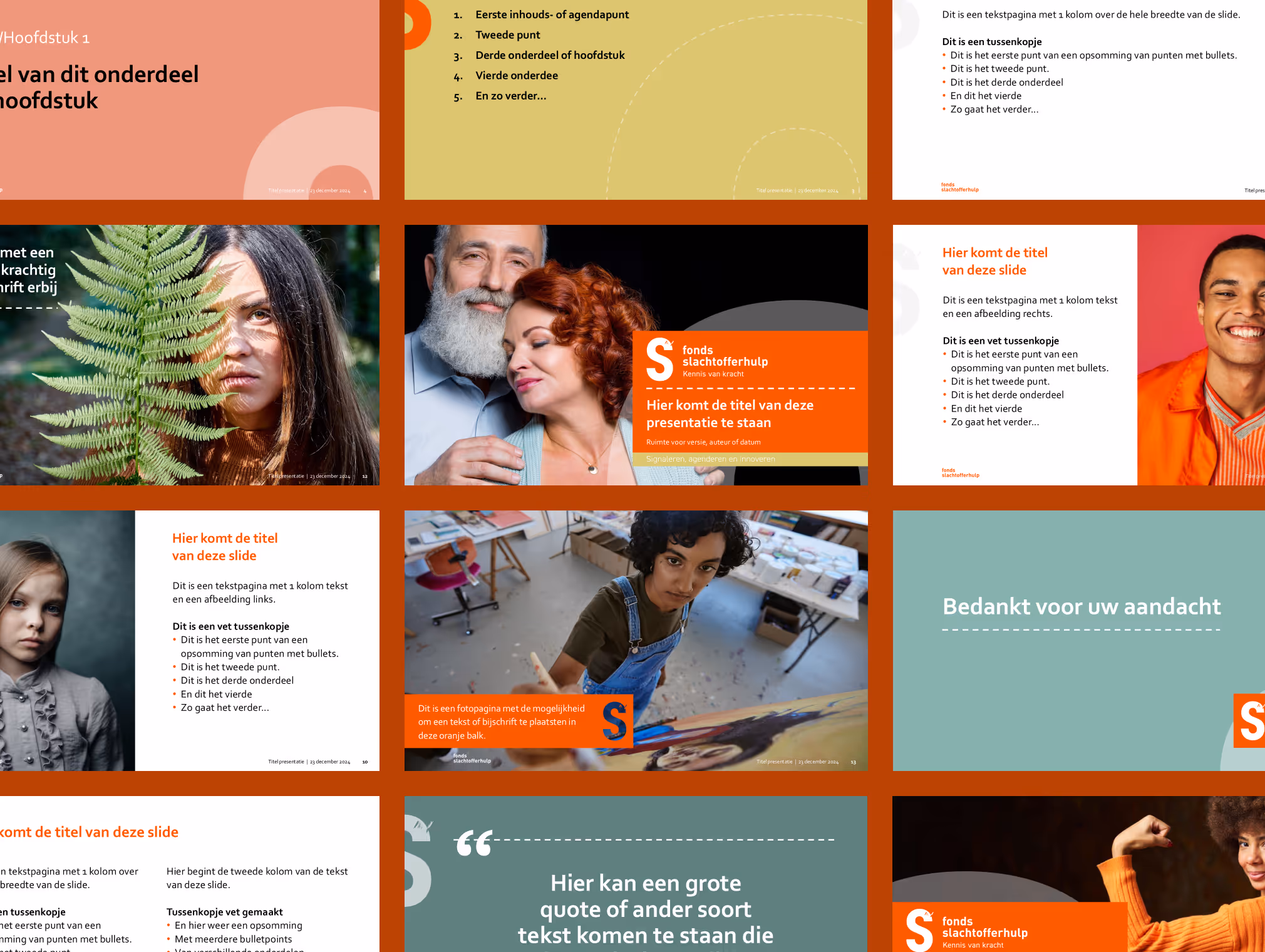 Fonds Slachtofferhulp (FSH) biedt hulp, steun en perspectief aan mensen die te maken krijgen met een ingrijpende gebeurtenis. Hun werk raakt aan gevoelige, complexe thema’s en aan een breed scala van stakeholders. Een organisatie met impact, maar nog niet altijd met de zichtbaarheid die daarbij past. Wij werden hun blended partner. Van strategie tot campagne, van merkverhaal tot visuele identiteit.