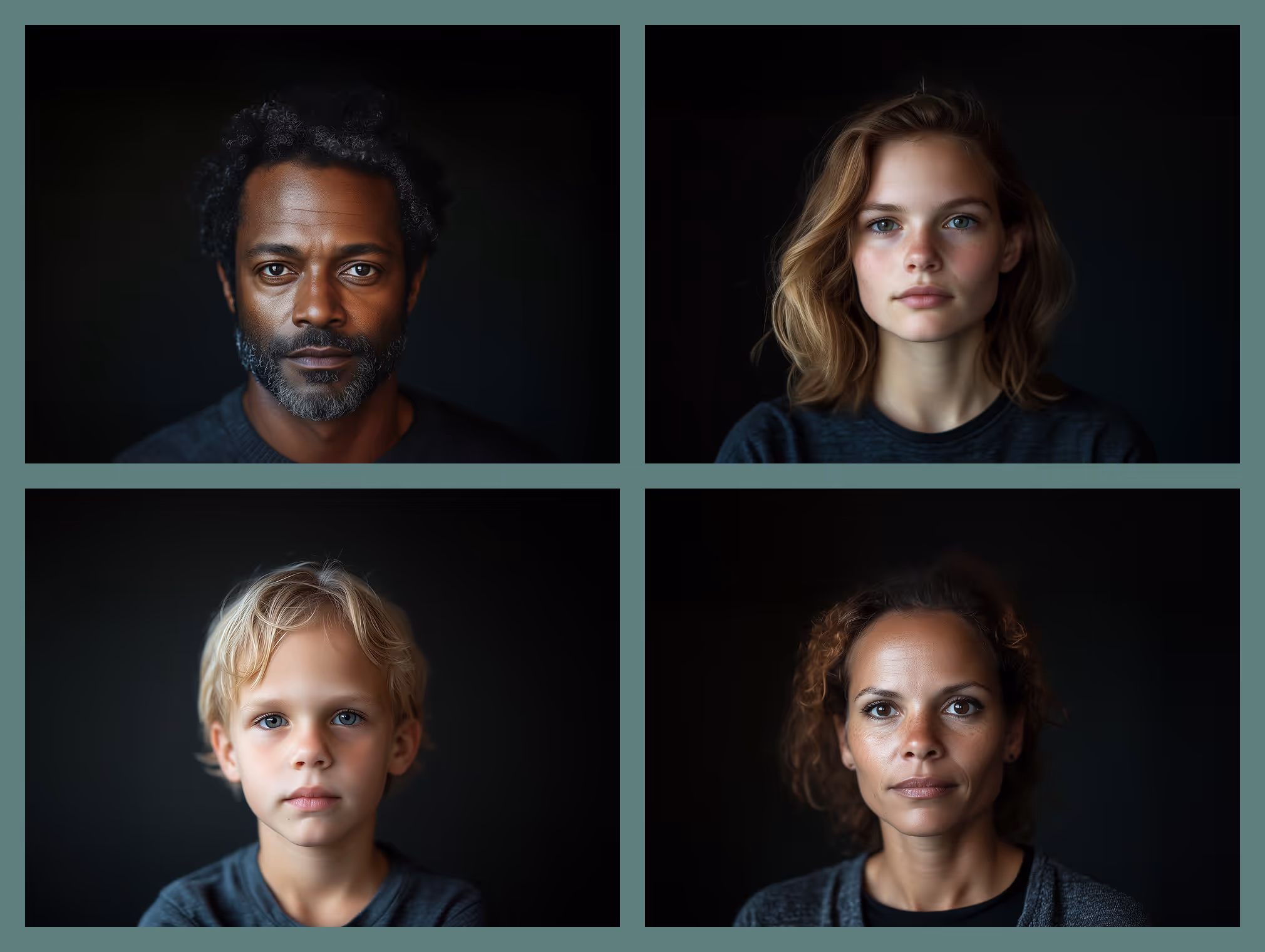 Vervolgens ontwikkelden we een brede awarenesscampagne die het werk van FSH op de kaart zet. Een campagne waarin het belang van FSH centraal staat, zonder voorbij te gaan aan de gevoeligheid van het domein. Echte slachtoffers kun je niet in beeld brengen. En stockbeelden doen het verhaal tekort. Daarom kozen we weloverwogen en in overleg voor AI. Met MidJourney ontwikkelden we vier unieke persona’s, van voren én achteren zichtbaar. Mensen die gezicht geven aan het onzichtbare. In Runway voegden we beweging toe, zodat de beelden ook in video’s geloofwaardig en invoelbaar overkomen.